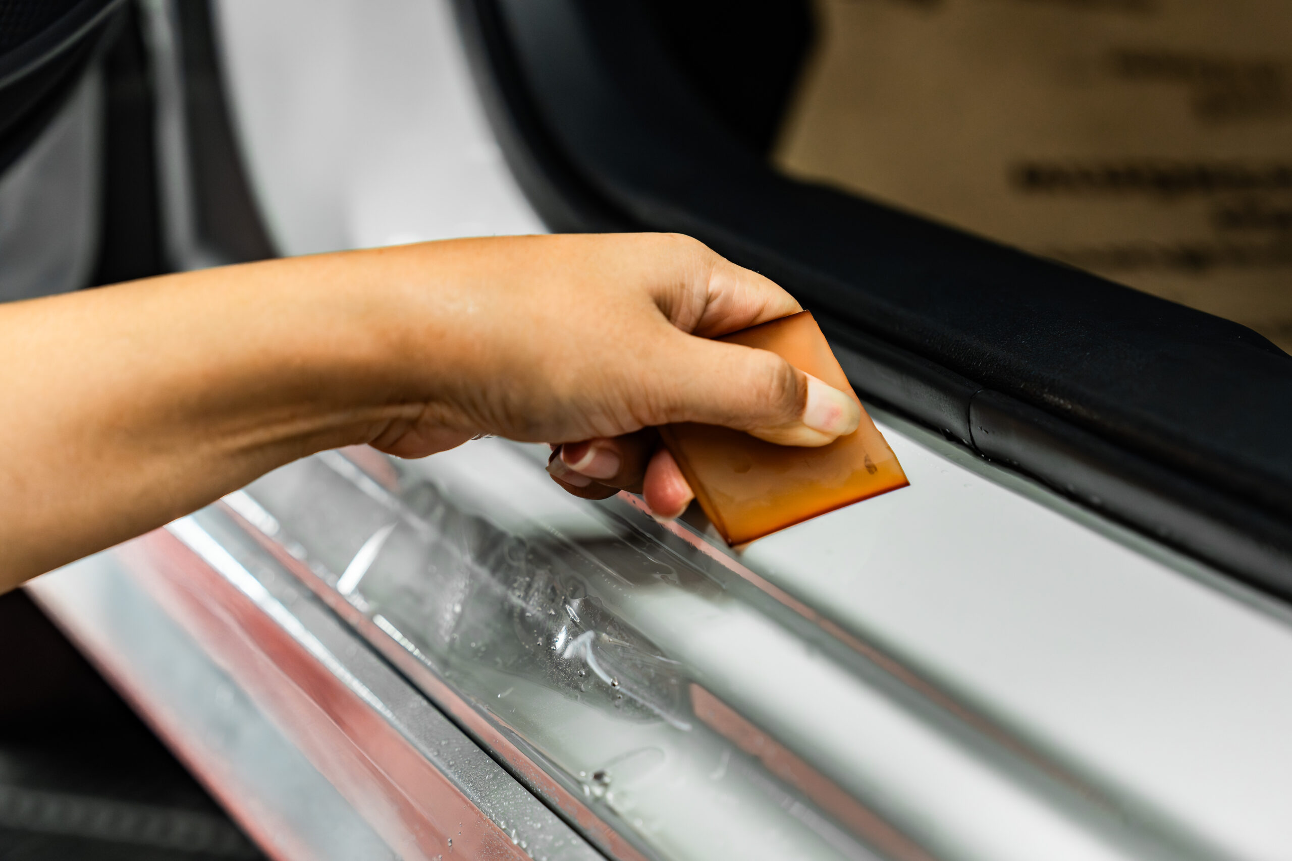 เราให้ความสำคัญกับทุกขั้นตอนของการติดตั้งฟิล์มกันรอยภายใน เพื่อให้ได้ผลงานที่เรียบร้อย สวยงาม และช่วยปกป้องพื้นผิวภายในรถจากรอยขีดข่วนได้อย่างมีประสิทธิภาพ